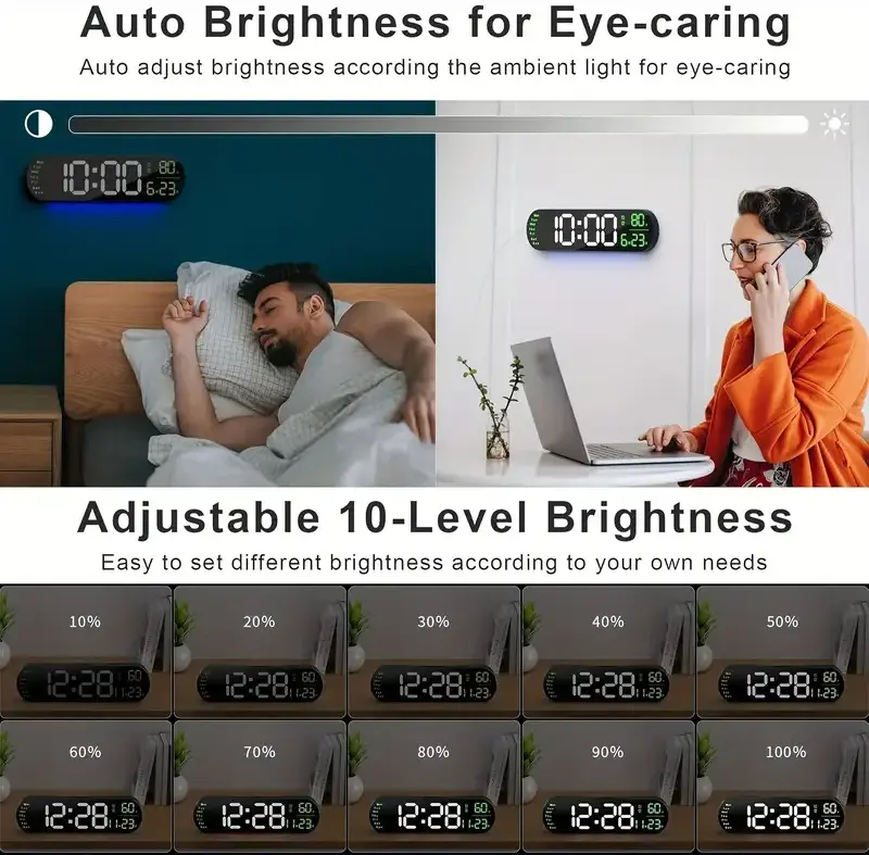 - Adjustable Brightness: 10-level manual brightness adjustment plus automatic sensitization with built-in light sensor.