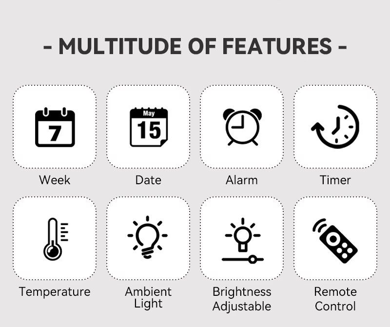 - Remote Control Included: Easily operate time settings, alarms, brightness, and more with a remote.