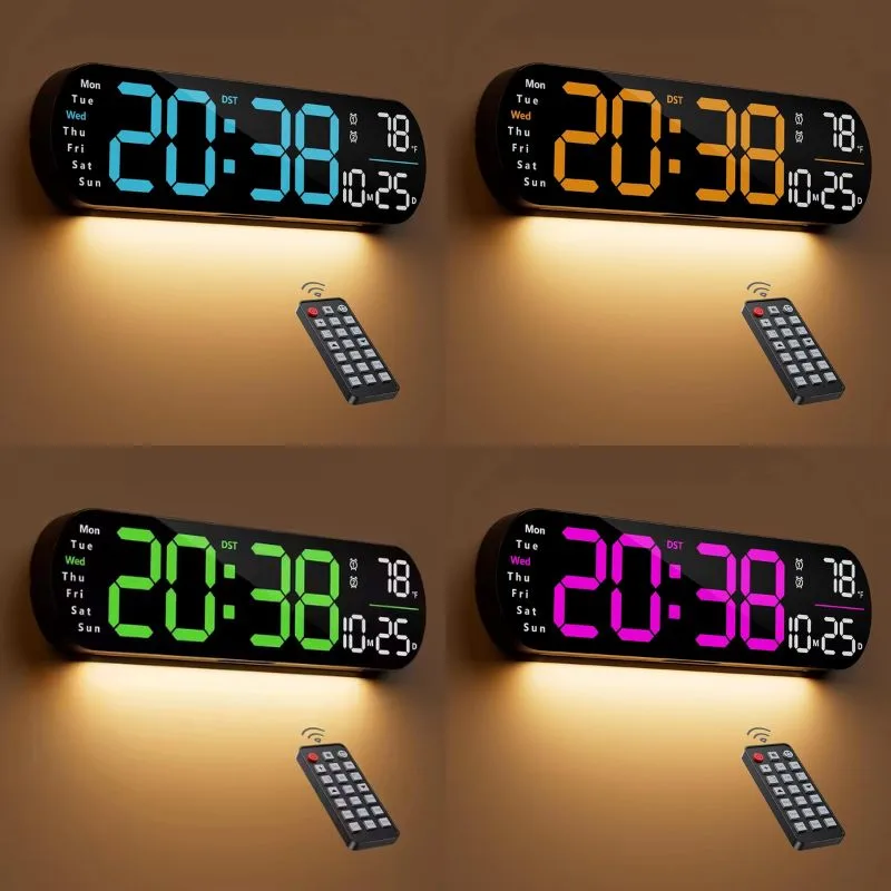 Remote Control Multi-Functional 16″ Digital Wall Clock with 5 Display Color Modes