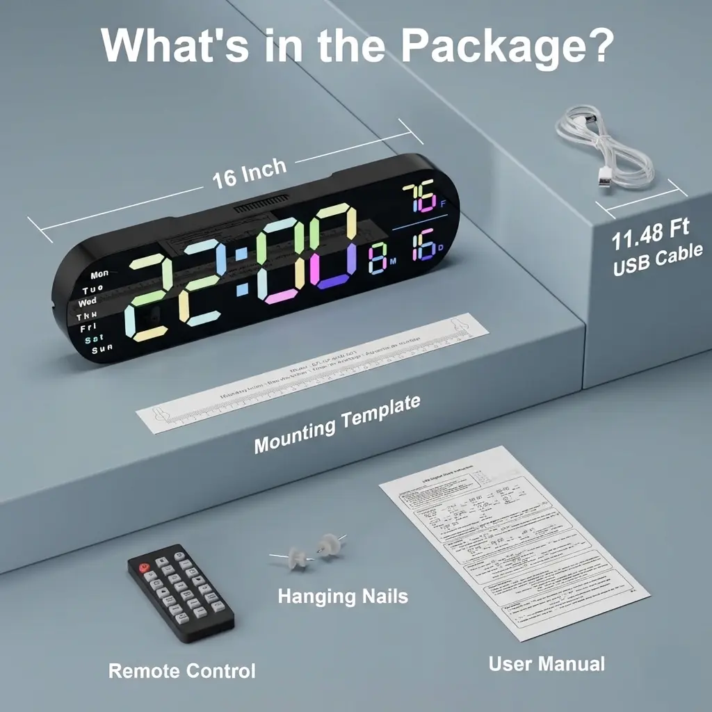 - Remote Control Included: Easily operate time settings, alarms, brightness, and more with a remote.