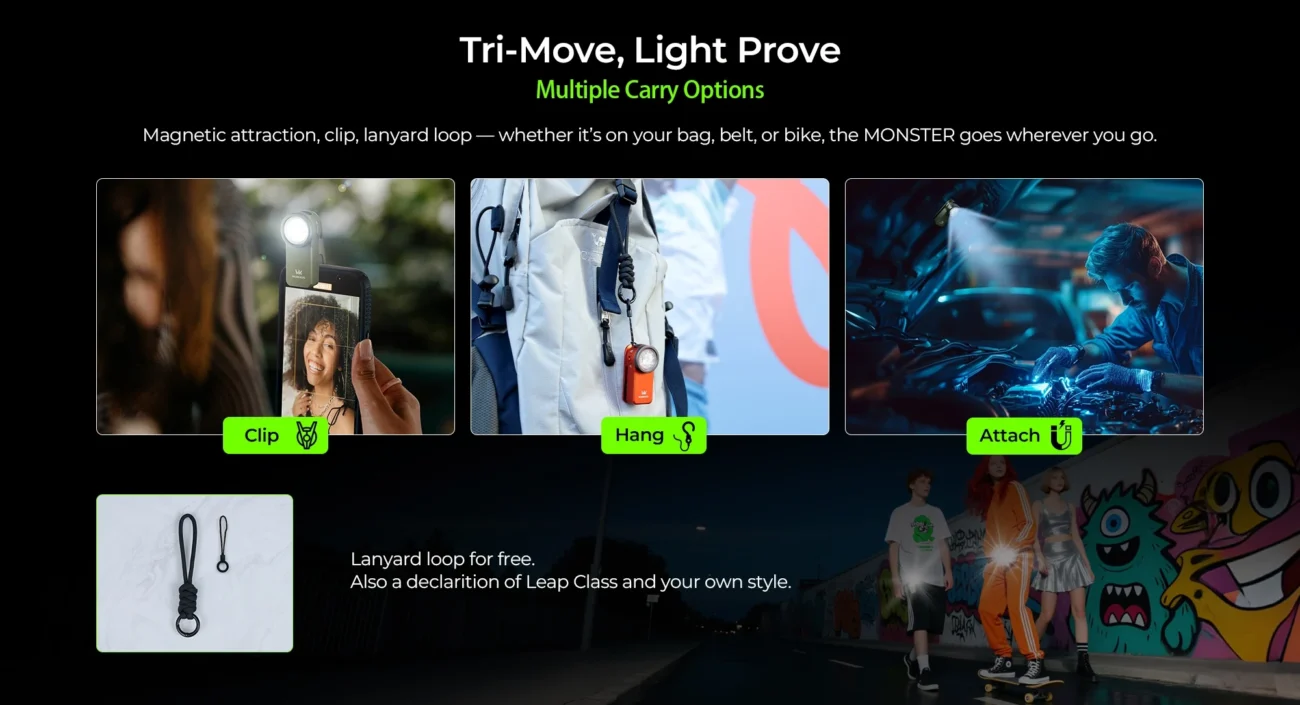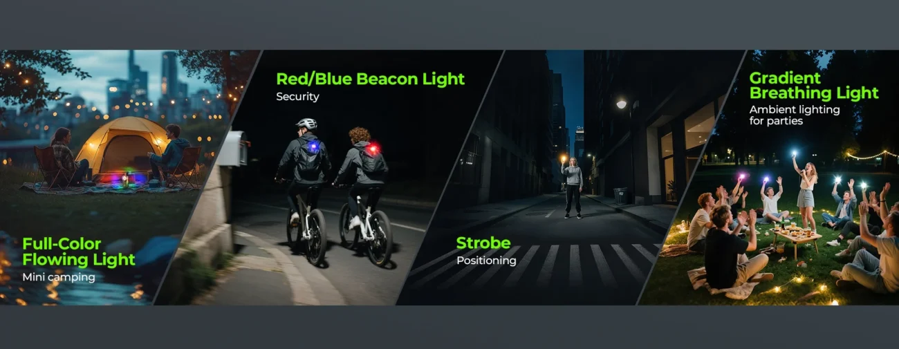 - Dynamic RGB: 20+ Colorful Modes for party or emergency.